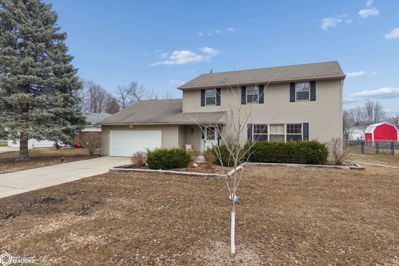 Welcome to this inviting home in Mason City's Meadowbrook-Briarstone neighborhood where comfort, space, and updates come together beautifully. Step inside to a welcoming foyer with generous storage that connects the oversized heated two-stall garage, kitchen, and bright front living room filled with natural light. The living room flows easily into the formal dining, while the kitchen offers abundant cabinetry, counter space, and an additional dining nook. Just beyond the kitchen is a convenient half bath and a cozy family room with fireplace and a door leading to the deck, an ideal spot for morning coffee, summer grilling, or simply relaxing while overlooking the spacious fenced backyard. The yard offers plenty of room for play, pets, or gatherings. Upstairs features four nicely sized bedrooms and a full bath. The partially finished lower level adds even more flexibility with additional living space and storage. A wonderful home with many improvements in a sought-after neighborhood!