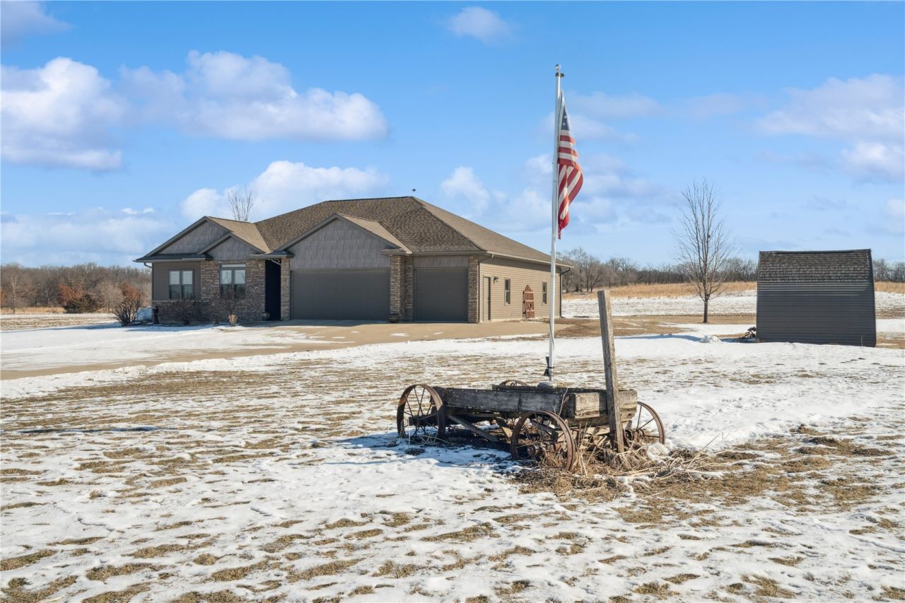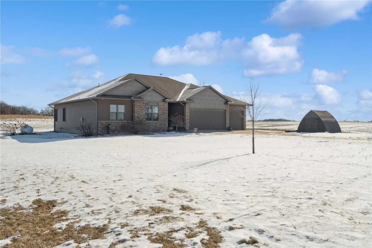 Quality custom-built acreage just off the blacktop?better than new and ready to impress. Situated on approximately 1 acre, this beautifully maintained home offers an easy commute to Cedar Rapids, Dubuque, or Waterloo while delivering the space and freedom of country living. Step inside to an open floor plan highlighted by stunning Asian walnut hardwood floors, rich cherry cabinetry, and granite countertops throughout. The main level features a flexible formal dining room or four-seasons room overlooking the backyard?an ideal space to unwind or entertain. Outside, you'll find a backyard bar area with plenty of room to add a pool, fire pit, or outdoor gathering space, plus a garden shed perfect for tools, hobbies, or a charming she-shed. The garage is absolutely amazing and truly the envy of any hobbyist or car collector, featuring four large garage stalls with plenty of room for vehicles, toys, tools, and storage. A convenient door off the back of the house adds easy access and functionality?perfect for everyday living and entertaining. The home offers three spacious bedrooms on the main level, including a primary suite with heated floors, double sinks, and a tiled walk-in shower for a spa-like experience. The additional main-level bath also features double sinks and heated floors. The lower level provides a large recreation room perfect for game nights, along with an additional bedroom and ample storage. Geothermal heating and cooling provide exceptional energy efficiency and lower operating costs. With no covenants, this property is truly a blank canvas for your acreage dreams. An additional 2 acres may be available separately, ideal for homesteading, horses, or expanded outdoor living. A rare opportunity for flexible acreage living with quality construction, efficiency, and freedom?just minutes from town.