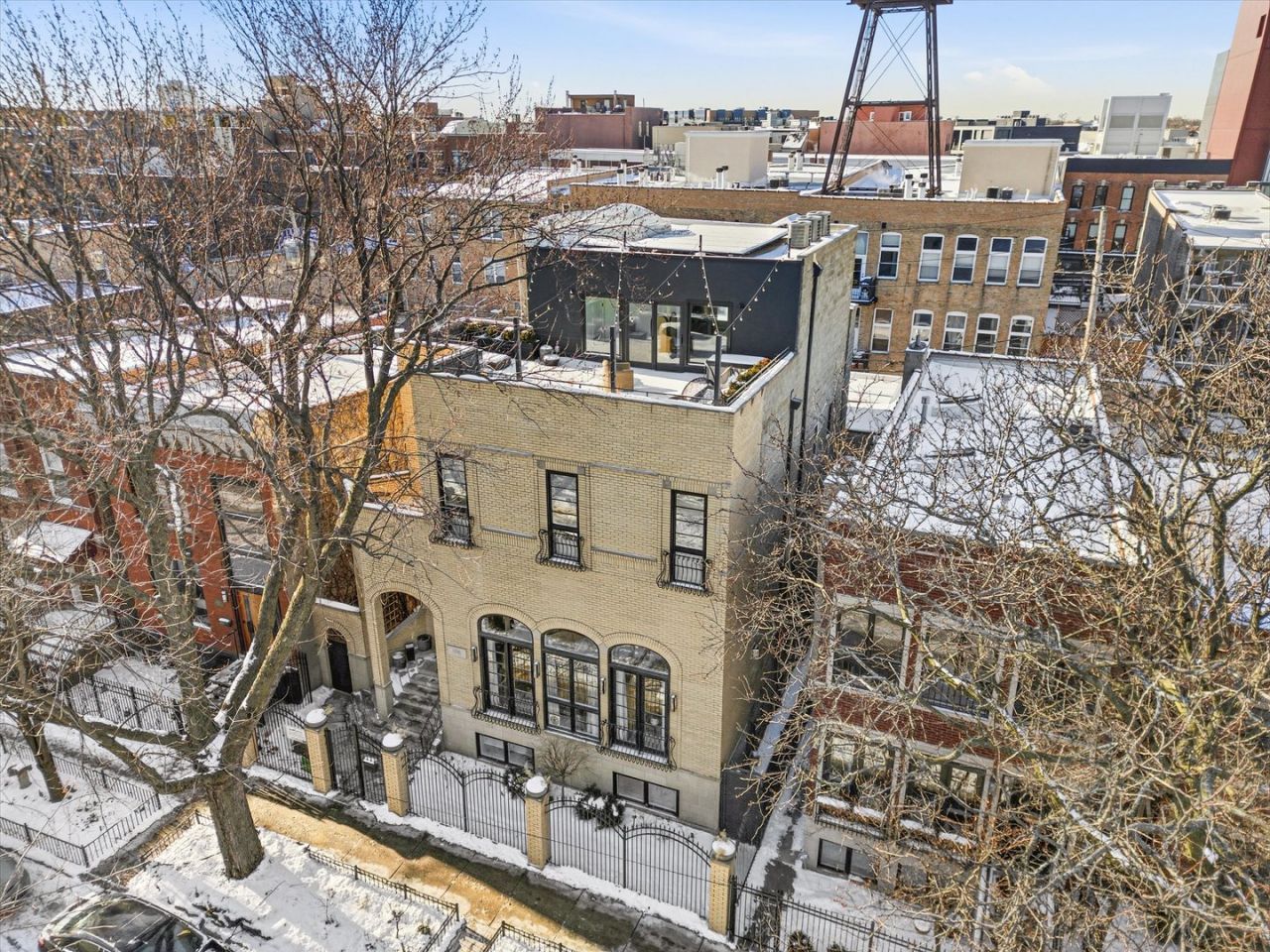 A showpiece of refined design and modern innovation, this extraordinary residence, featured in Modern Luxury and Crate & Barrel, was masterfully reimagined in 2021 to deliver a seamless blend of architectural character and state-of-the-art living, anchored by a breathtaking 35' atrium crowned by a dramatic spiral staircase that sets an unforgettable first impression. Striking interiors captivate with Chicago brick curved accent walls, rich hardwood flooring, curated designer lighting, and two dramatic fireplaces with gas starters, creating warmth and ambiance at every turn. The chef's kitchen is a true culinary centerpiece, appointed with extra wide Sub-Zero refrigerator, a KitchenAid 5-burner cooktop, KitchenAid double ovens, and dual dishwashers, perfect for effortless entertaining. Thoughtful enhancements include a purification system, integrated soap dispenser, and additional beverage refrigeration in both the private gym and executive office. Retreat to the spa-inspired primary suite, where a steam shower elevates daily rituals into a luxury experience. The lower level features heated floors for year-round comfort, complemented by Hunter Douglas window treatments throughout and Lutron smart shades in the primary bedroom. A wine cellar that holds up to 230 bottles provides the ultimate finishing touch for sophisticated entertaining. Behind the walls, uncompromising infrastructure ensures peace of mind: three HVAC systems, auto shut-off system, dual sump pumps plus ejector monitored via WiFi, and a full gas generator. Integrated smart-home technology includes Lutron Caseta lighting, Ring security and cameras and Sonos multi-zone audio. Comprehensive security features interior and exterior Ring camera systems. A highly sought-after attached heated garage offers a sleek epoxy floor plus generous exterior pad parking as well as self-irrigation system with built in planters on rooftop as well as around the home for easy maintenance. Recent exterior improvements include a 2025 garage roof replacement with added solar panels and a newer home roof. A rare and distinguished offering where editorial-level design meets true modern performance, this is luxury living without compromise.