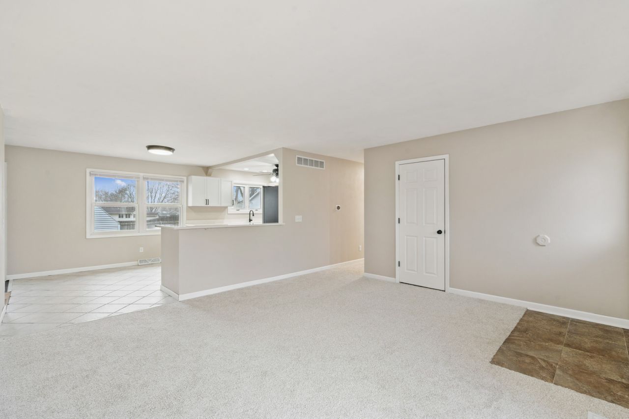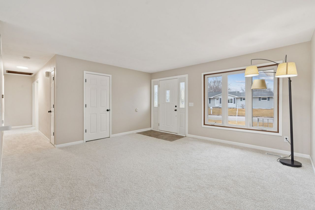 Recently refreshed ranch on a quarter acre corner lot in Park View, IA. Offering 3 bedrooms, 3.5 bathrooms, plus a non-conforming bedroom suite downstairs. The main level shines with fresh paint and brand new carpeting throughout, plus a beautifully remodeled kitchen with quartz countertops, white cabinetry, and black stainless appliances. The primary bedroom includes a private full bath. Downstairs offers over 1,000 finished sq ft with a spacious rec room, recessed lighting, stylish bar area, office, storage space, and a non-conforming bedroom suite with walk-in closet and a full bath, ideal for guests or growing families. Off the rec room is another half bath. All mechanicals replaced within the last 7 years including a water softener and a nearly new washer & dryer set. Outside, you can unwind in the fenced backyard or enjoy morning coffee and evening conversations on the oversized front porch. Just beyond your yard are neighborhood walking trails and pocket parks. Saturdays come alive with the crack of bats and roaring cheers from the nearby youth baseball fields. Located in the North Scott School District with affordable taxes and modest HOA dues. This is the kind of home families grow into and stay for years.