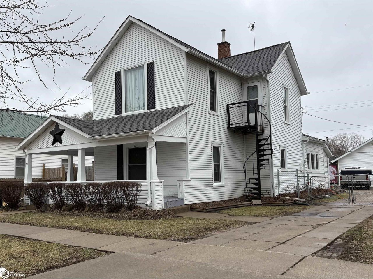 Charming updated 4 bed 2 bath home with a spacious inviting front porch and fully fenced yard. This home blends comfort, charm, and functionality. Tall ceilings and updated kitchen and bathrooms make this home move in ready for its next owners. On the main floor you will find the living room, dining room, kitchen, laundry room, mud room, 1 full bathroom, and the primary bedroom. Upstairs you will find 3 additional bedrooms and a full bathroom. 1 of the upstairs bedrooms has been converted into a 2nd kitchen with an exterior door and spiral staircase leading out, perfectly set up for additional income potential in this home.