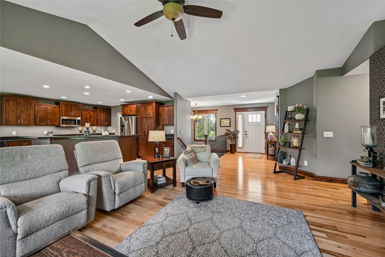 Tucked away at the end of a quiet cul-de-sac in Fairfax, this beautifully maintained 4-bedroom, 3-bathroom ranch home has so much to offer. Inside, you'll find hickory hardwood floors throughout the main level and vaulted ceilings that create an open, airy feel. The spacious kitchen features granite countertops, stainless steel appliances, a breakfast bar, and designated dining area. For added convenience, the laundry room is on the main level, just off the kitchen. The primary bedroom has its own bathroom, with a custom tiled walk-in shower. Downstairs, the finished lower level is built for hosting, complete with a wet bar and gas fireplace. There's plenty of room for vehicles and storage in the attached, 3 stall garage. Enjoy time outside on the back patio or relaxing on the screened-in porch, rain or shine! Owned and loved for the past 12 years, this home has been meticulously cared for and is ready to welcome its next owners!