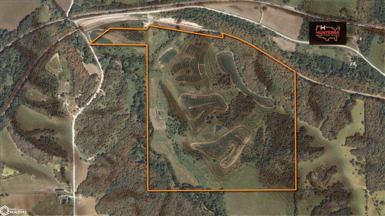 This secluded Monroe County farm is loaded with diverse habitat, including hardwood timber, bottomland timber, native grasses, tillable acres, and multiple ponds. Situated in the heart of one of the most well-known whitetail counties in all of southern Iowa, this is a prime hunting farm with the ideal setup to intercept the kind of giant bucks the area is famous for. Access further enhances the seclusion. After turning off the gravel road, you cross railroad tracks that naturally limit traffic and result in virtually no road frontage or visibility into the property. As you enter through the gated entrance, you'll find a level area with electricity and rural water already on site?an excellent location for parking a camper or building a cabin. There is a smaller shed to store tools and hunting equipment as well. This setup allows you to stay on the property without disturbing key hunting areas. Several miscanthus plantings near the entrance provide outstanding screening around the potential campsite. The majority of the timber consists of hardwood hilltops with patchy cedar cover, particularly along the eastern side of the property. Several acres of the farm are enrolled in the Conservation Reserve Program (CRP), contributing both habitat value and dependable income. The property also includes about 12 additional tillable acres that could be maintained as food plots or cash rented for further income potential.